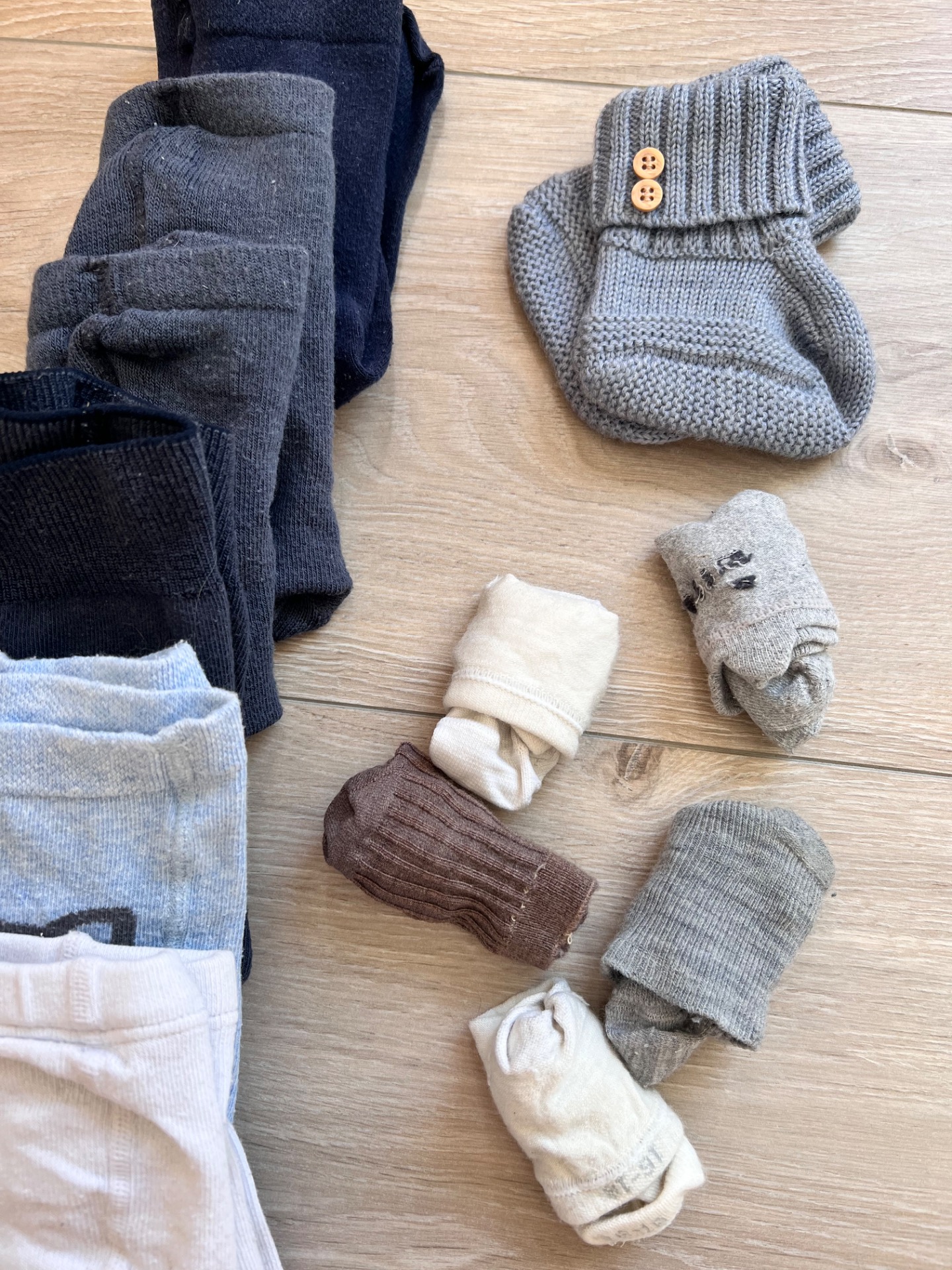6 stk strømpebukser, 5 stk sokker og 1 par tøfler